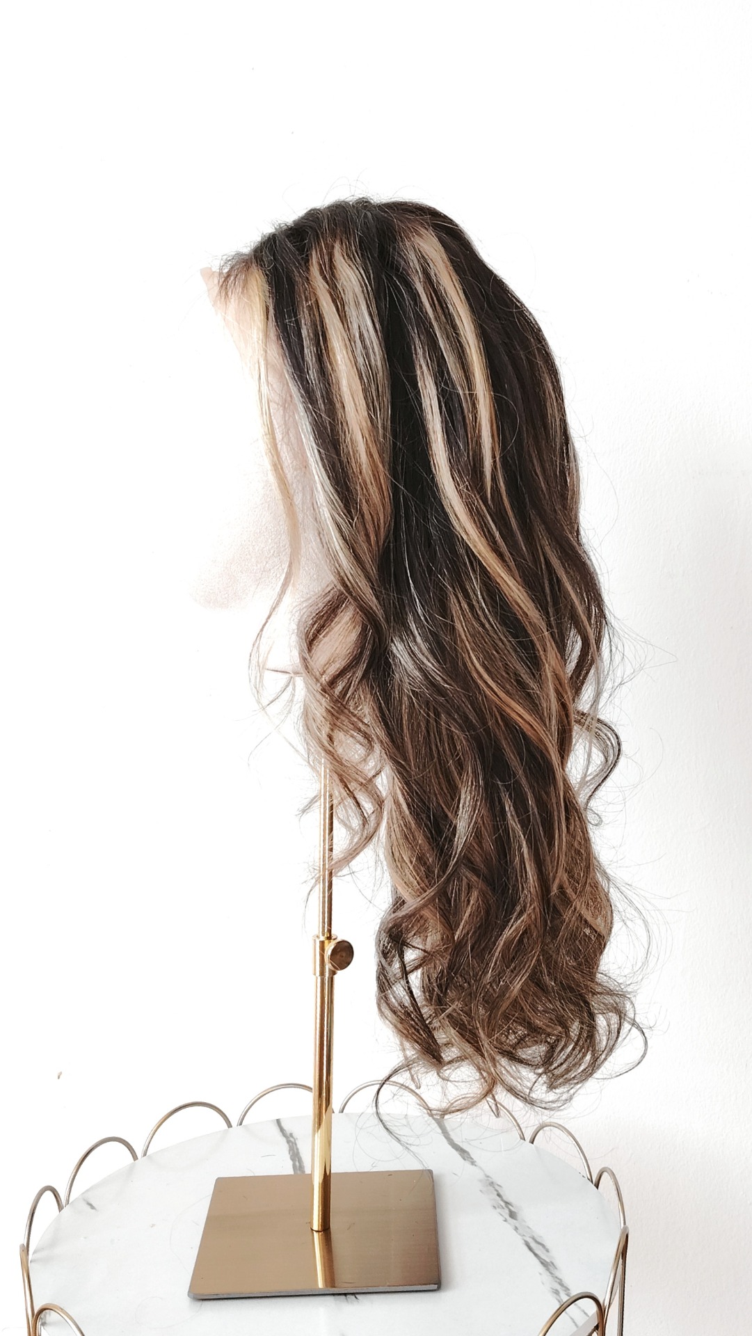 Luxusní paruka z pravých indických vlasů v odstínu Chocolate Blonde 613 Mix kombinuje přirozený čokoládově hnědý základ se světlými blond prameny v tónu 613. Výsledkem je elegantní, kontrastní vzhled, který působí sofistikovaně a přirozeně zároveň.
