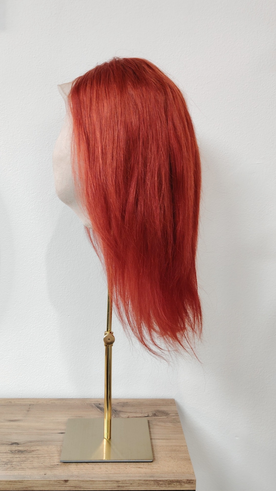 Luxusní paruka z pravých indických vlasů v odstínu Copper Red přináší dokonalou kombinaci elegance a sebevědomí. Sytý měděný tón rozzáří pleť a podtrhne rysy obličeje, zatímco přirozené vlny dodávají účesu jemnost a objem.