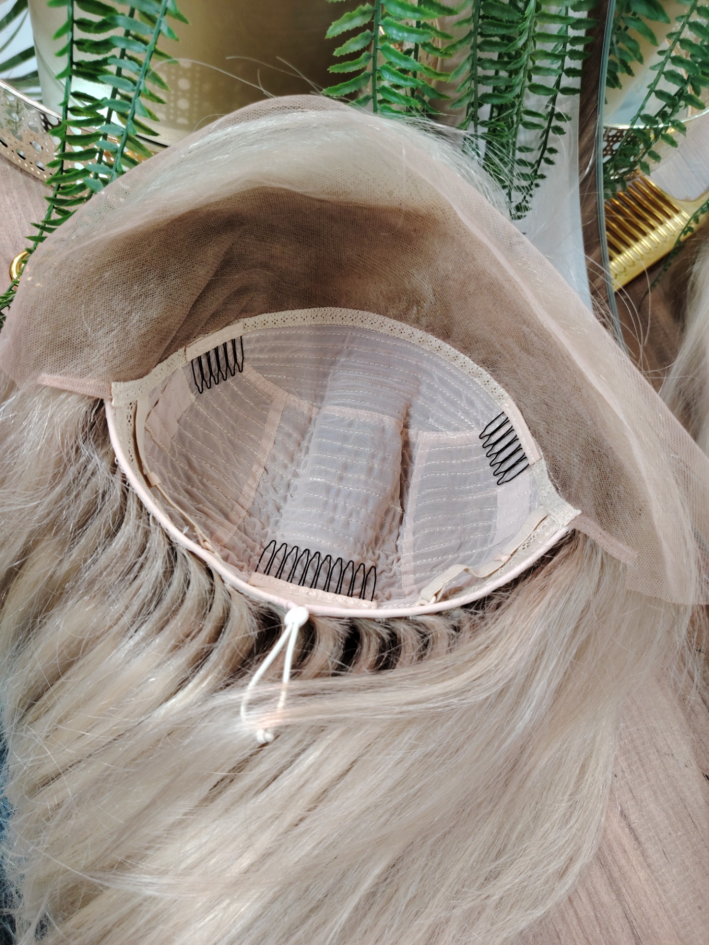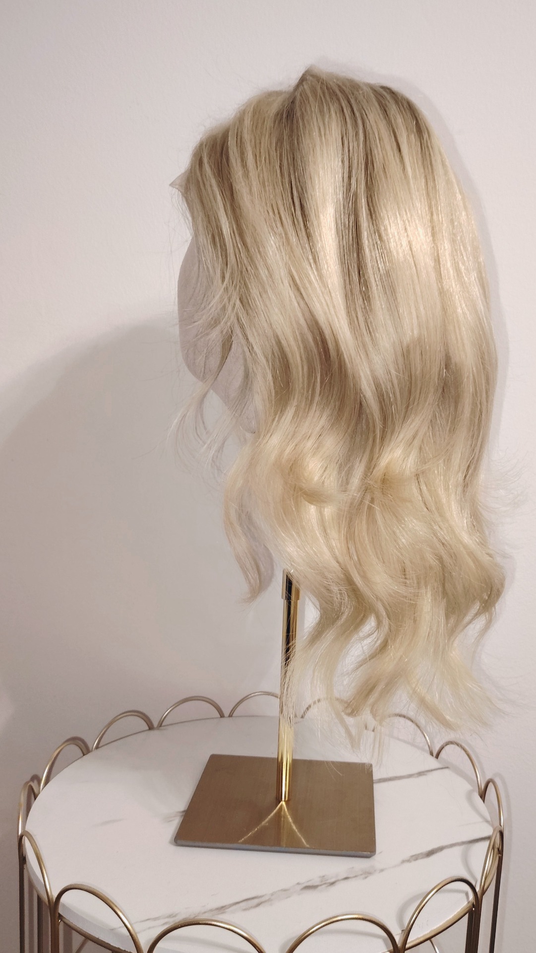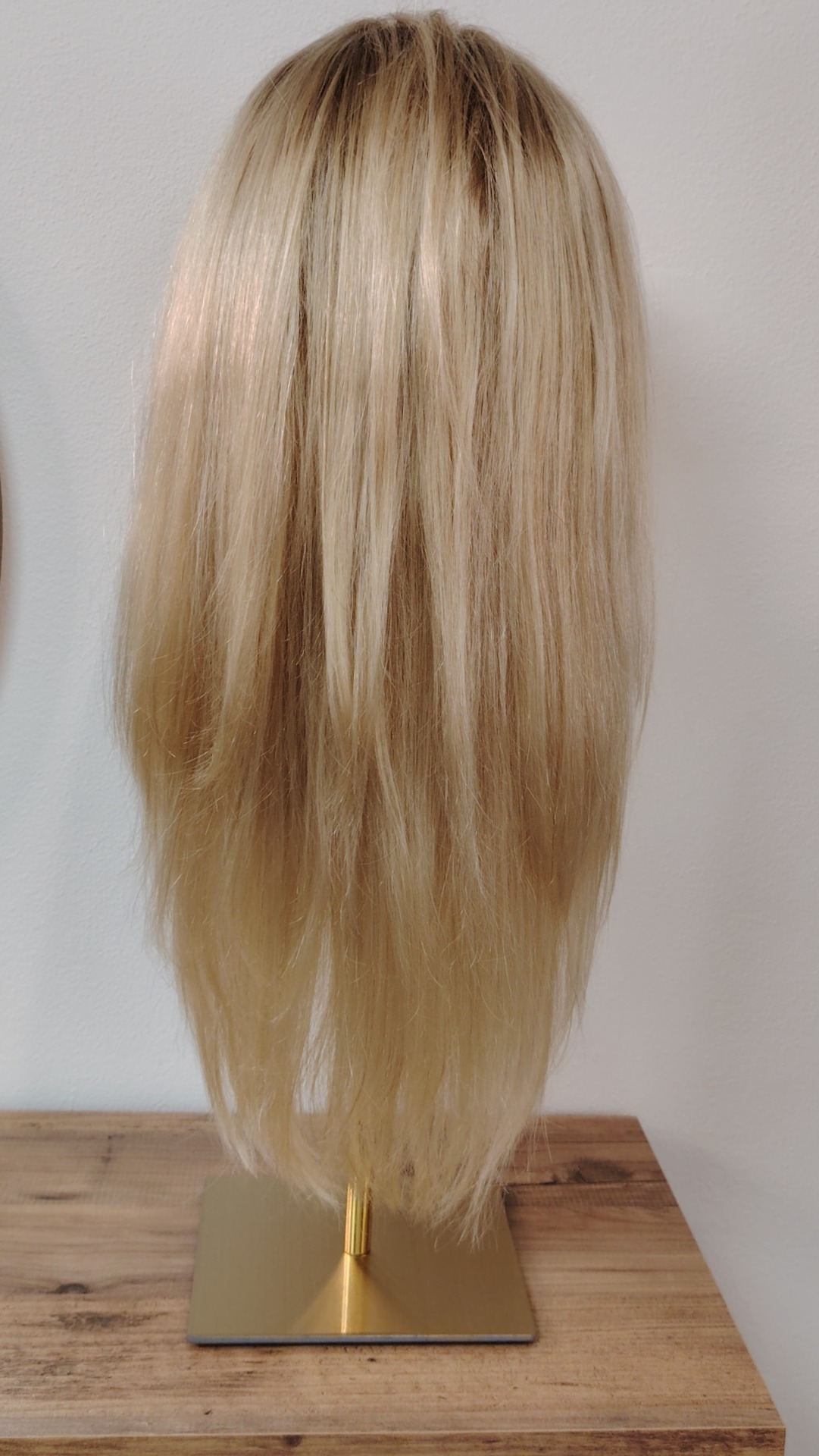 Tato paruka z pravých indických vlasů v odstínu Vanilla Blonde Melt je ideální volbou pro ženy, které hledají přirozený, ale zároveň elegantní vzhled. Spojuje tmavší kořínky s jemným přechodem do vanilkově blond tónů, díky čemuž působí velmi autenticky.