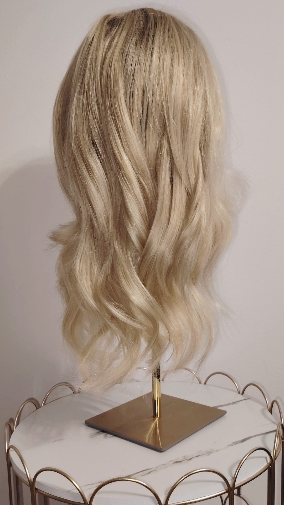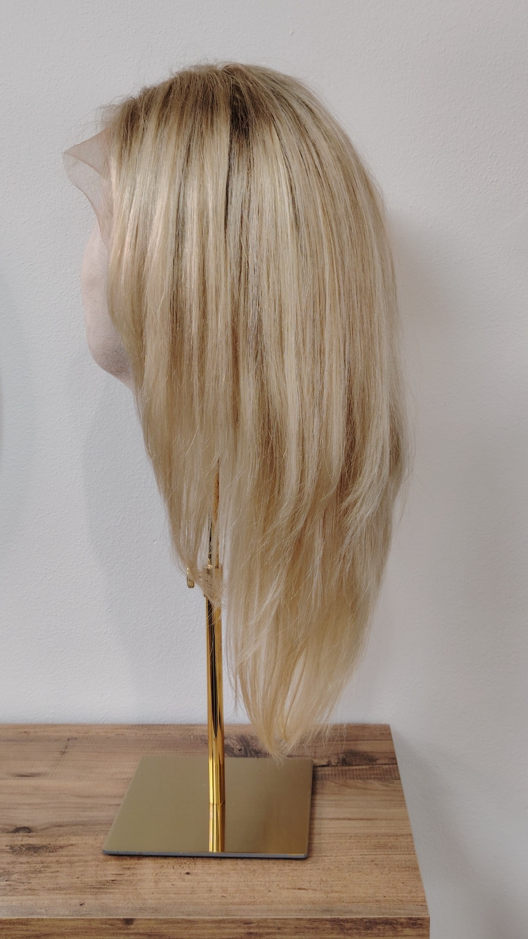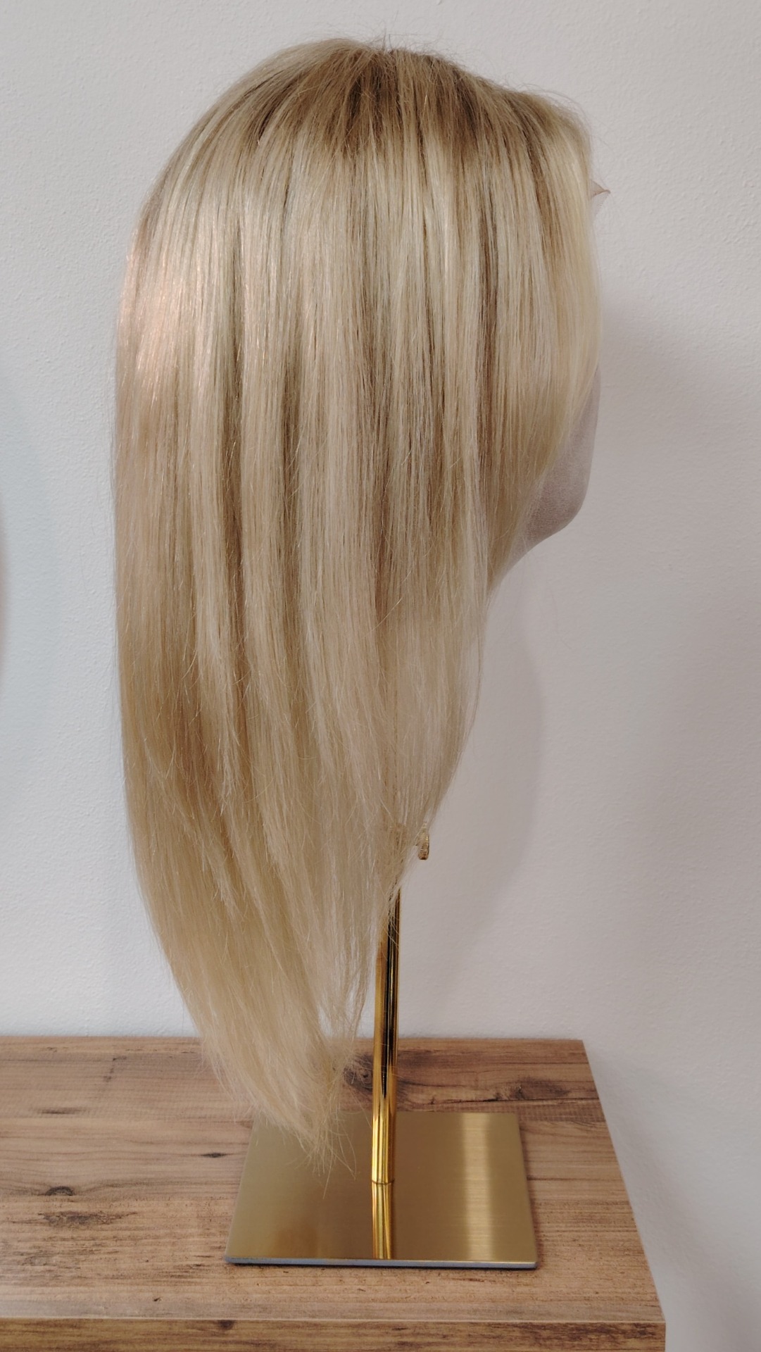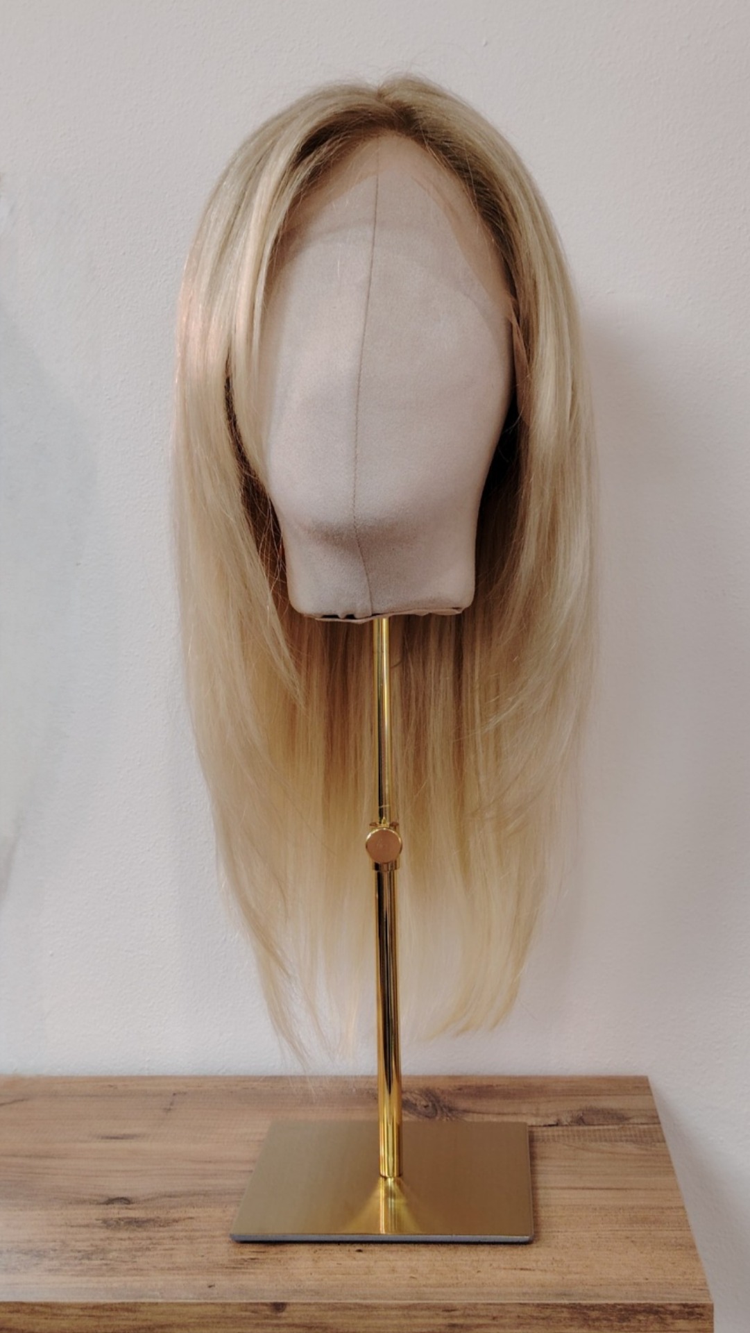 Tato paruka z pravých indických vlasů v odstínu Vanilla Blonde Melt je ideální volbou pro ženy, které hledají přirozený, ale zároveň elegantní vzhled. Spojuje tmavší kořínky s jemným přechodem do vanilkově blond tónů, díky čemuž působí velmi autenticky.