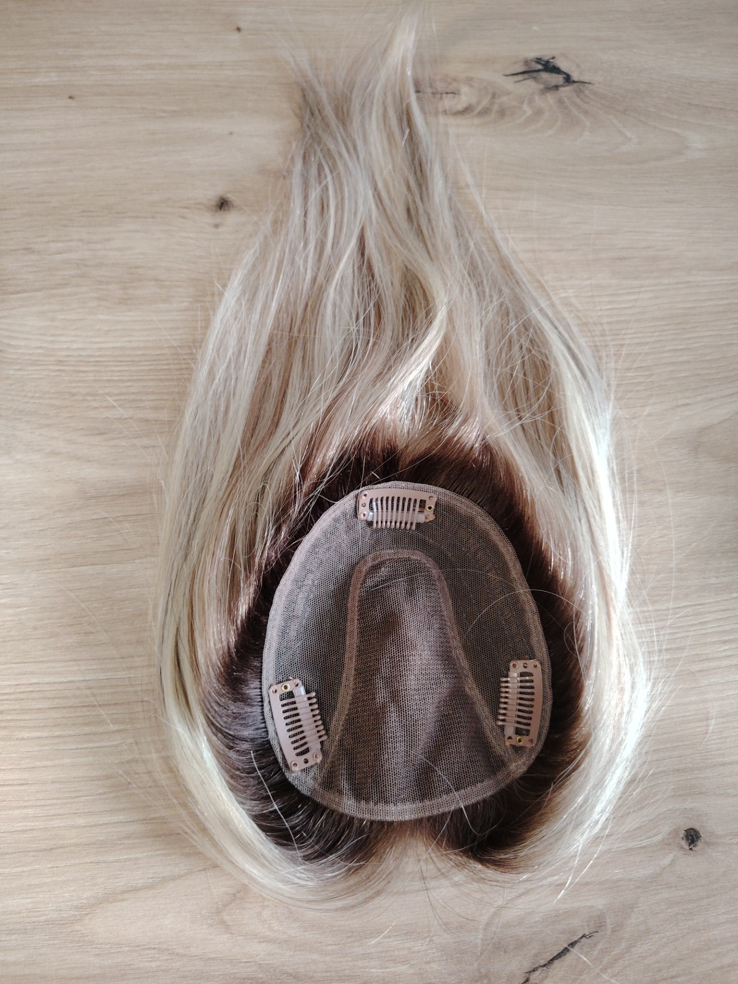 Odstín:přirozený tmavší odrost s přechodem do blond tónu (root melt)